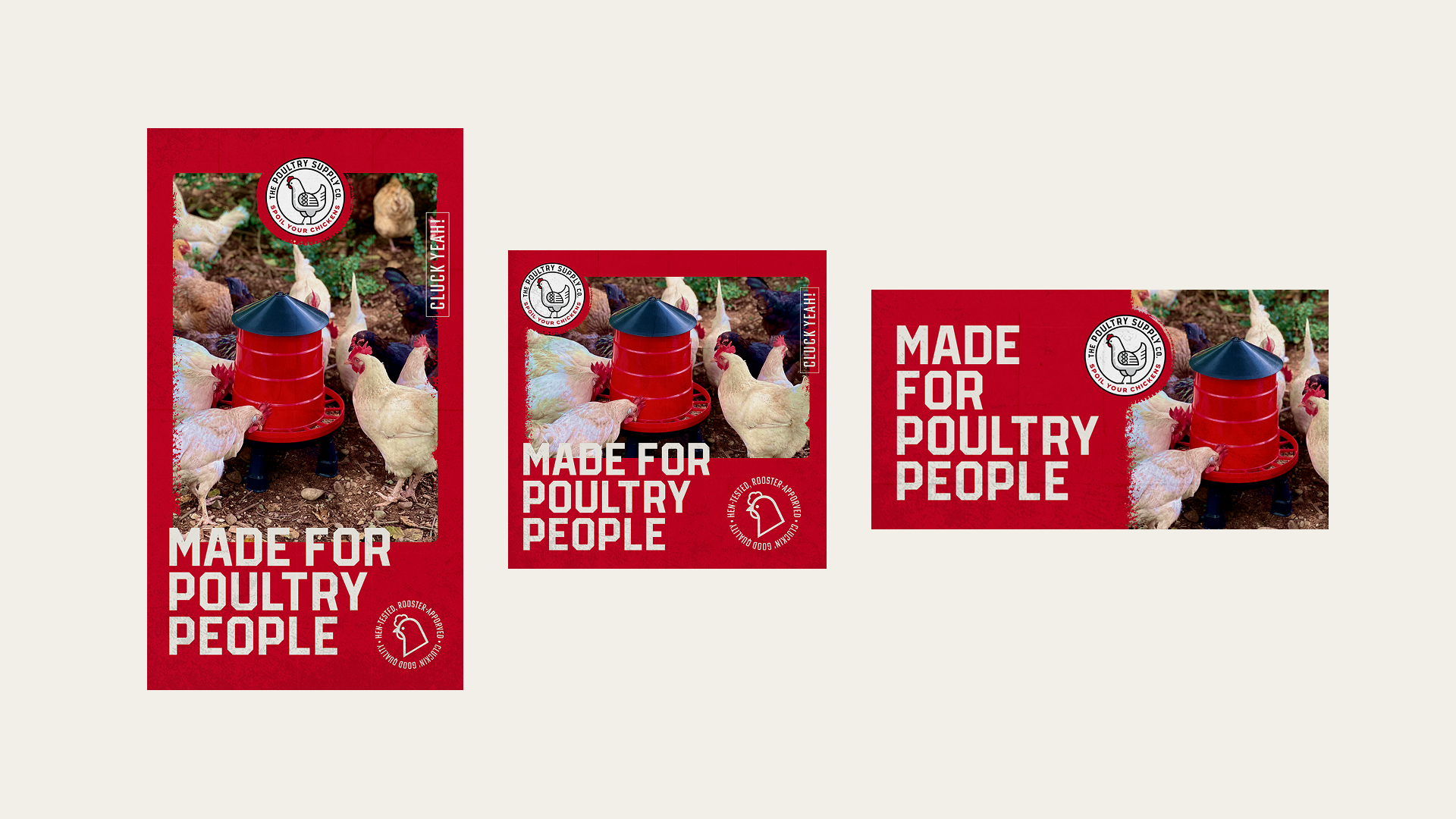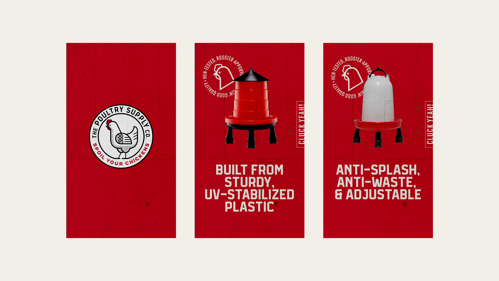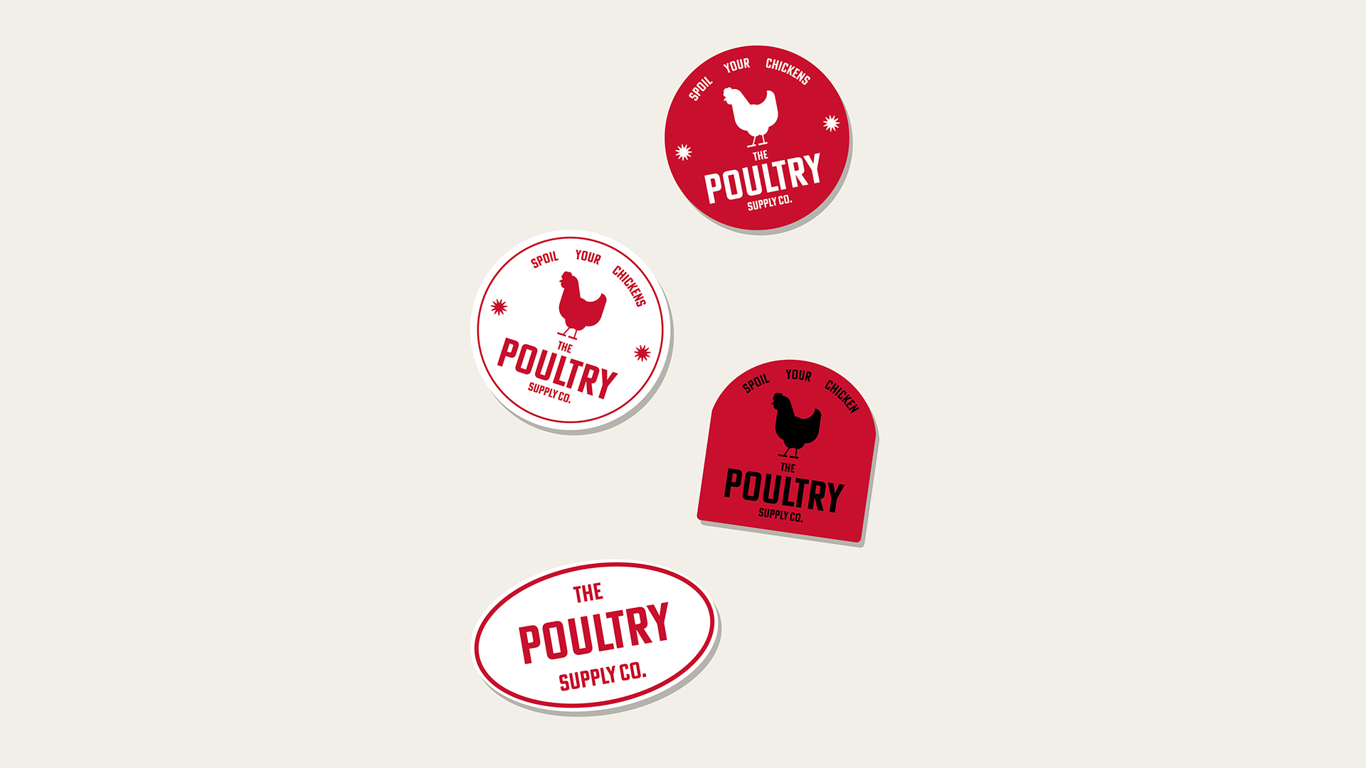 A collection of illustrative and typographical badges to be used on promotional graphics and content for social platforms for Poultry Supply Co.