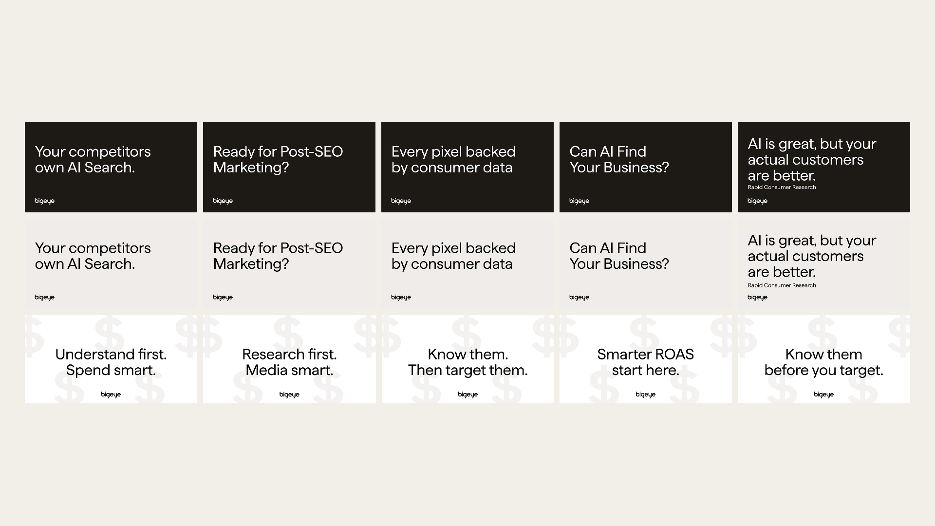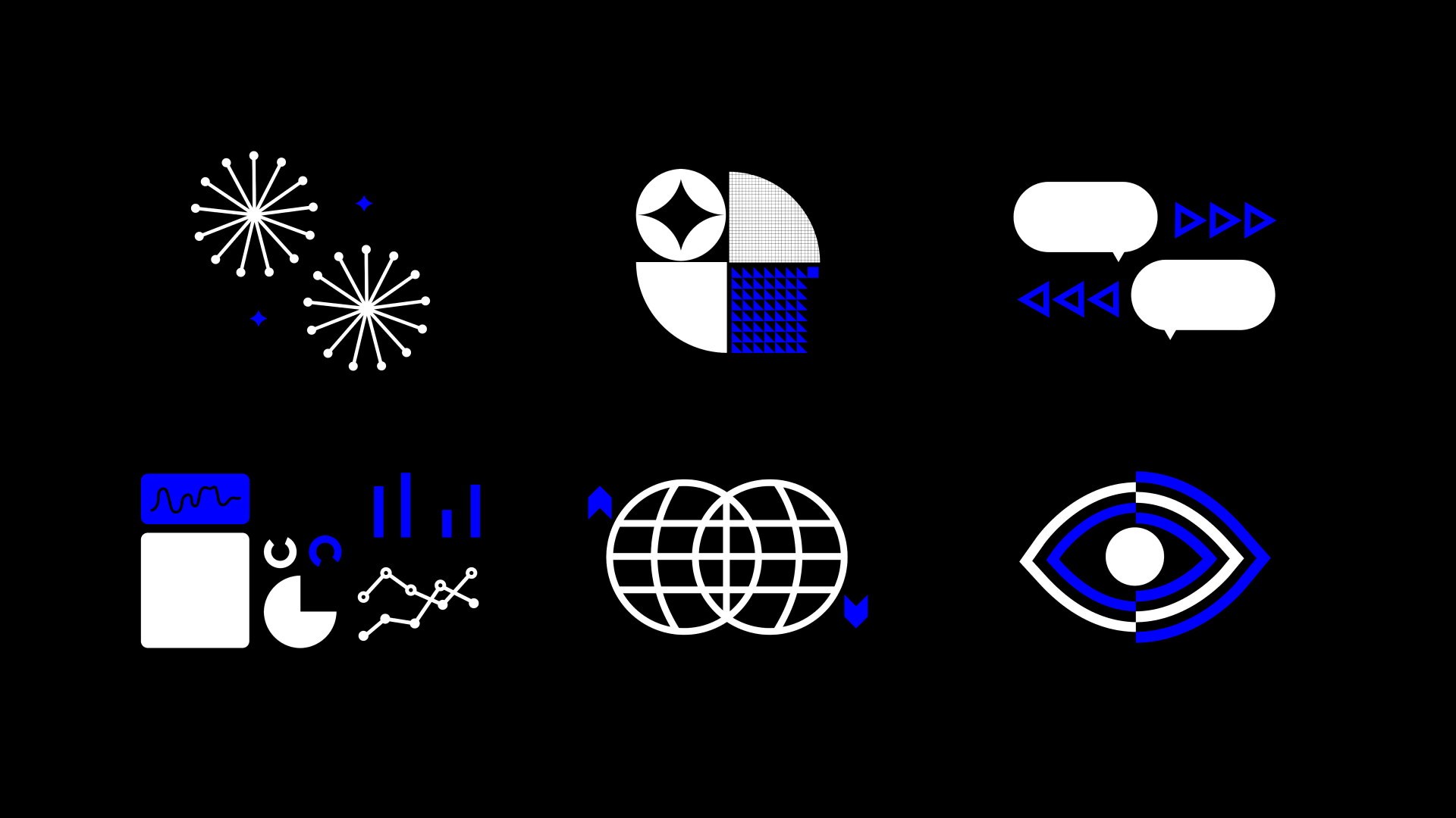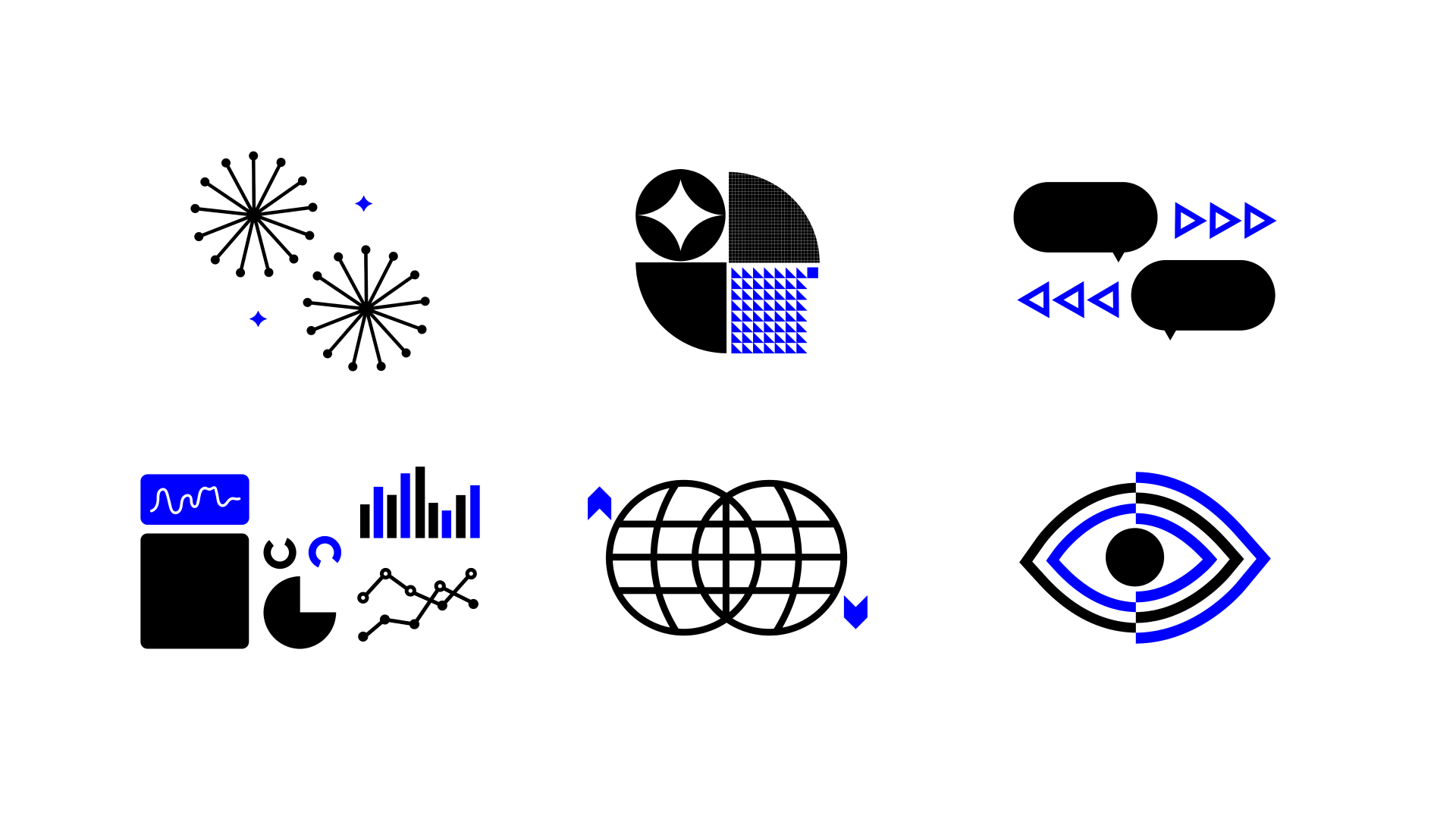 A collection of five new icons to represent the services the agency provides, which include Consumer Research, Creative Design, Media, Analytics, and Commerce. I designed the logo for their new analytics dashboard service called EyeQ.